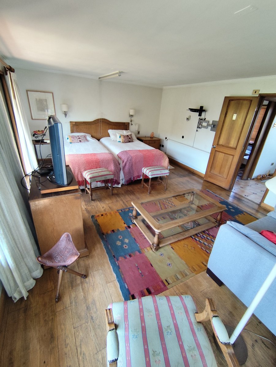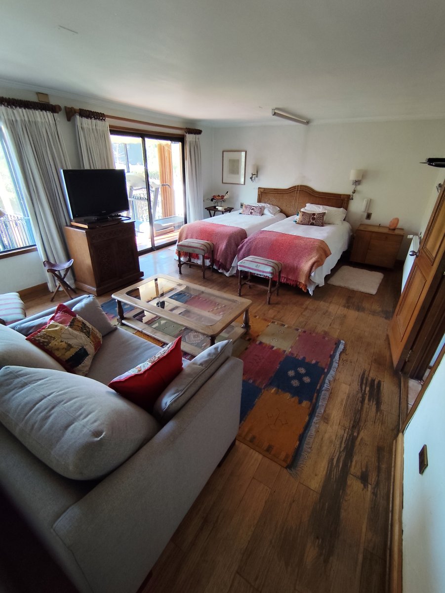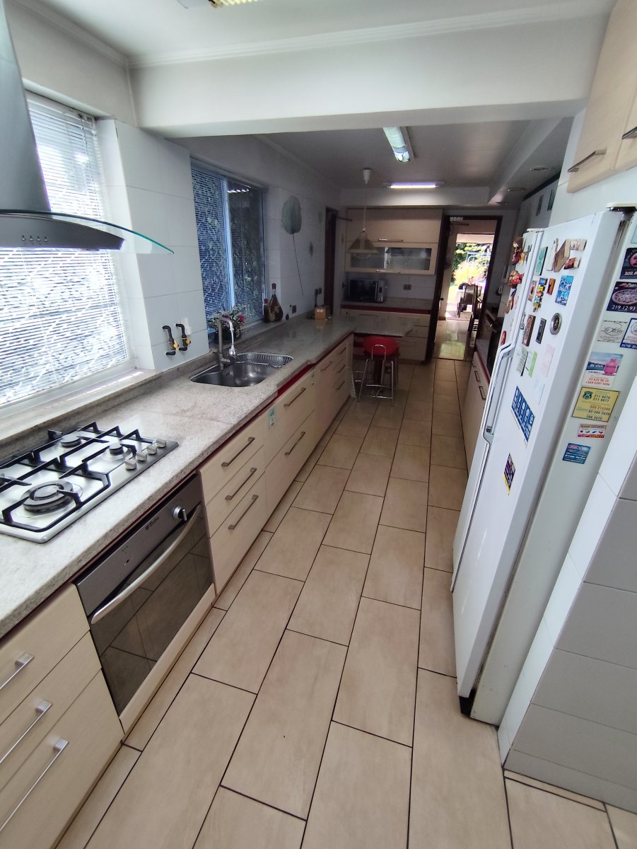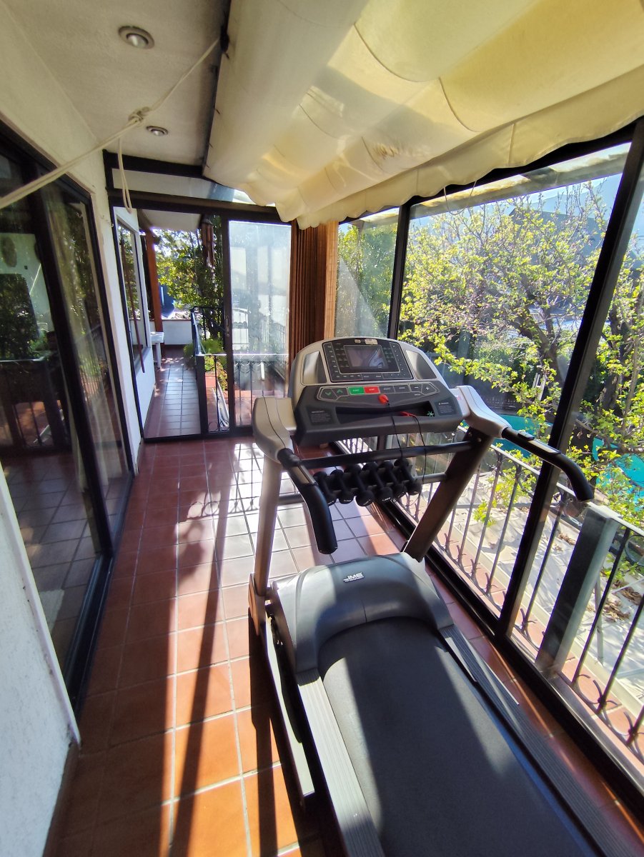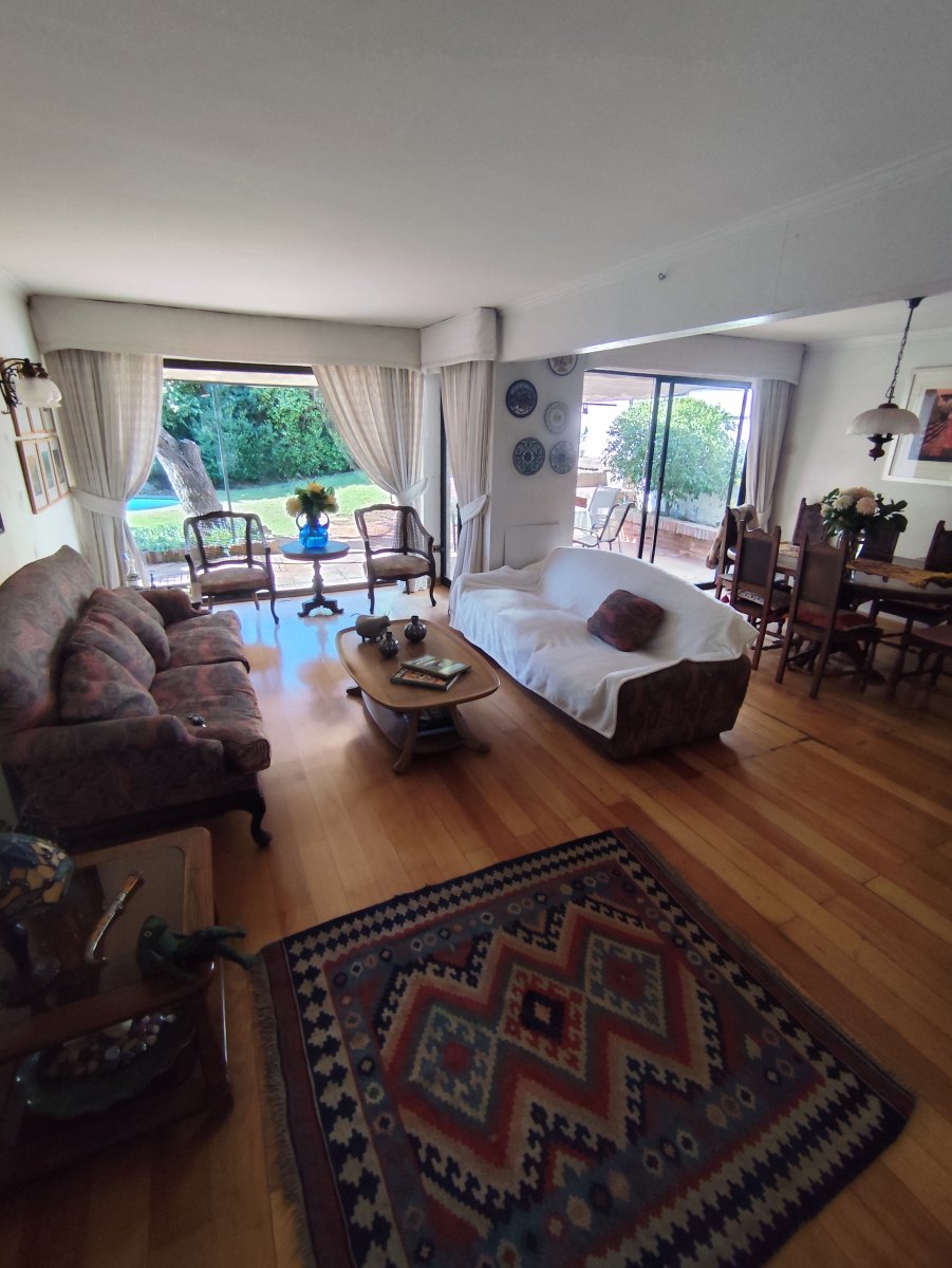 El interior destaca por pisos de madera en gran parte de la casa y cerámica en baños y cocina. En el exterior resalta el gran jardín, piscina, terraza, quincho, cobertizo en estacionamiento y espacio para tres vehículos. Cuenta con calefacción por radiadores y portón eléctrico.