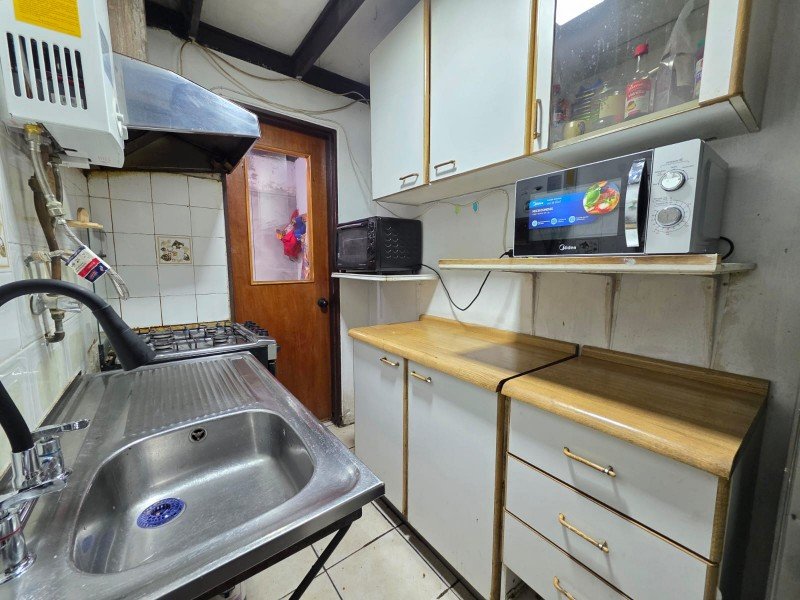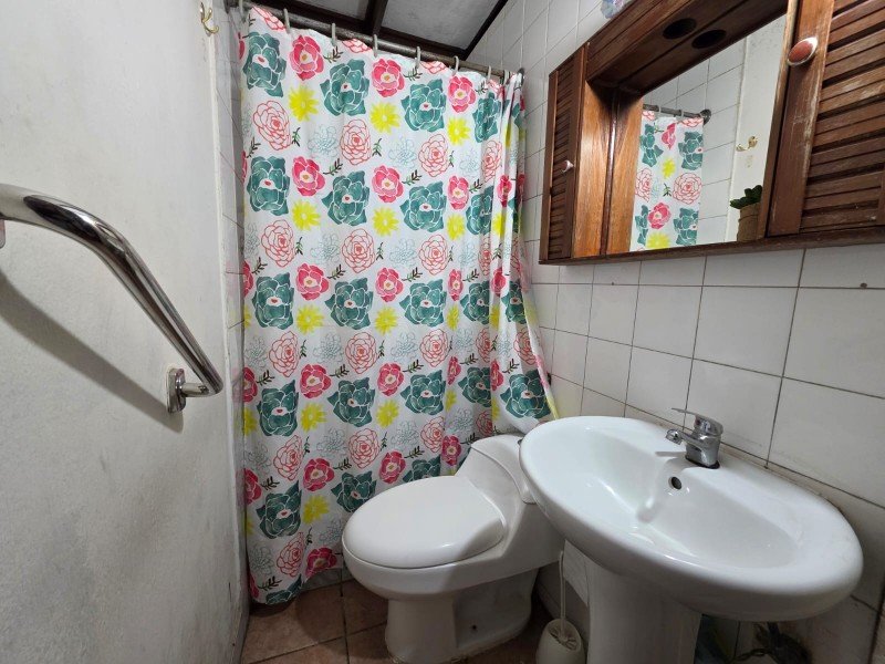 Piso flotante, piso cerámico en cocina, logia y baño.