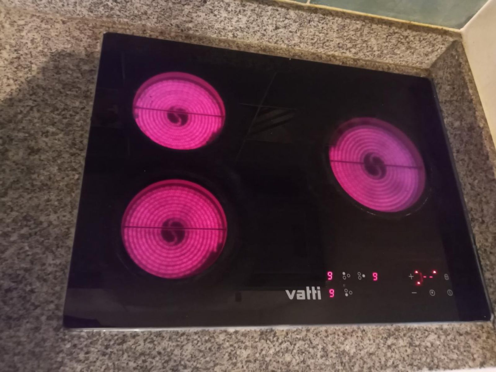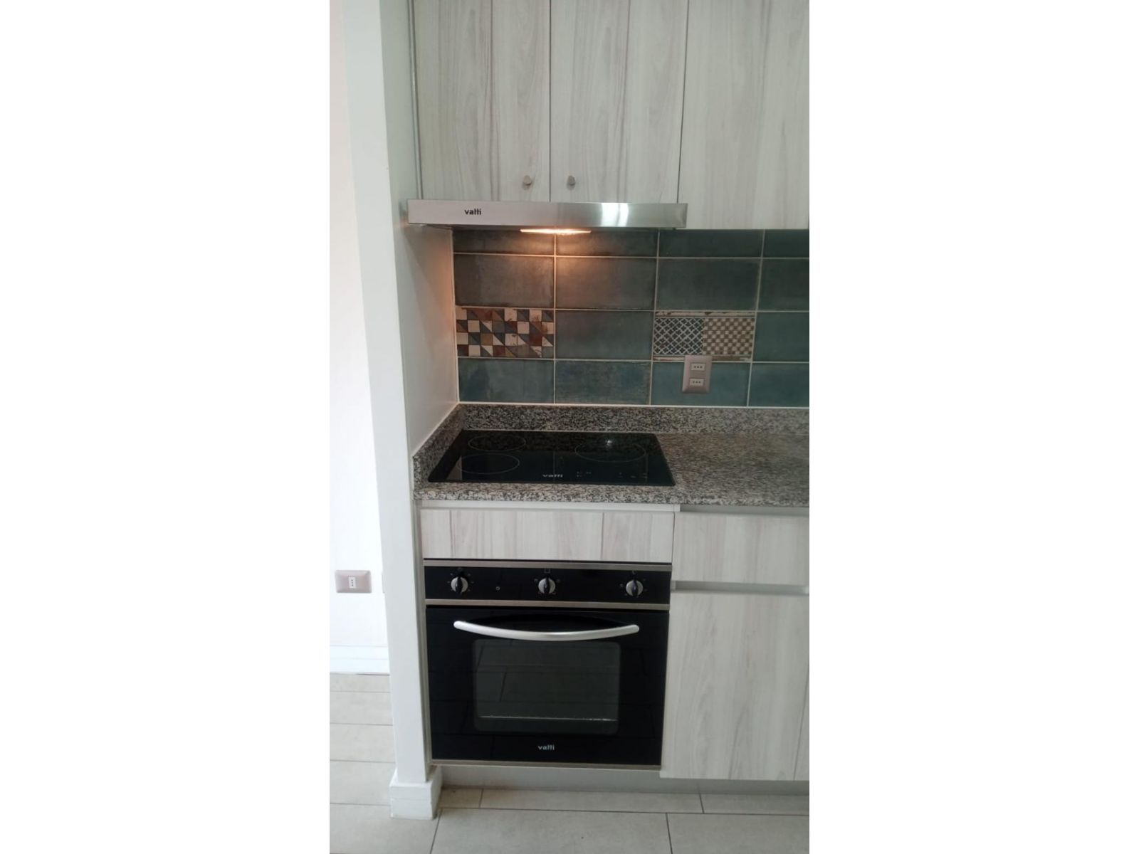 • Cocina integrada con múltiples muebles, alacena, cubierta de granito, encimera vitrocerámica, horno eléctrico y campana retráctil