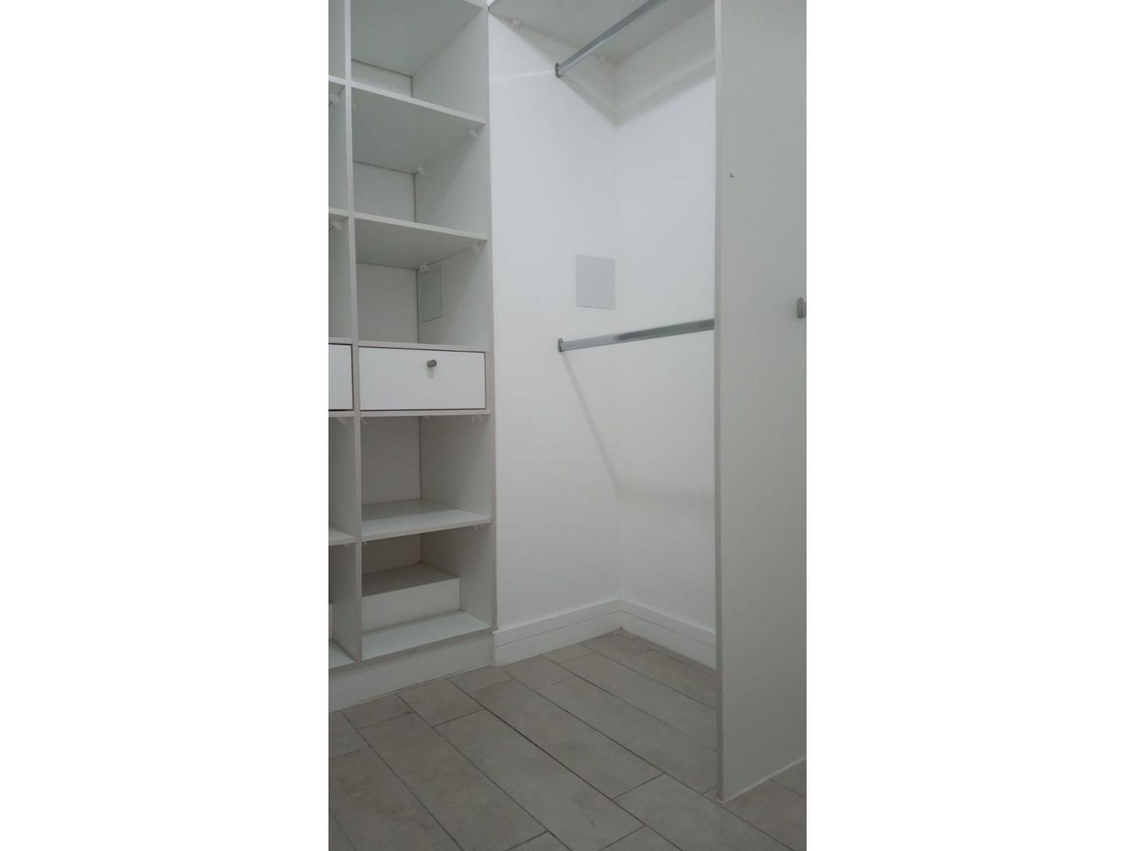 • Dormitorio principal amplio, apto para cama King + veladores, con walking closet, ventanal amplio, cortinas y lámparas instaladas