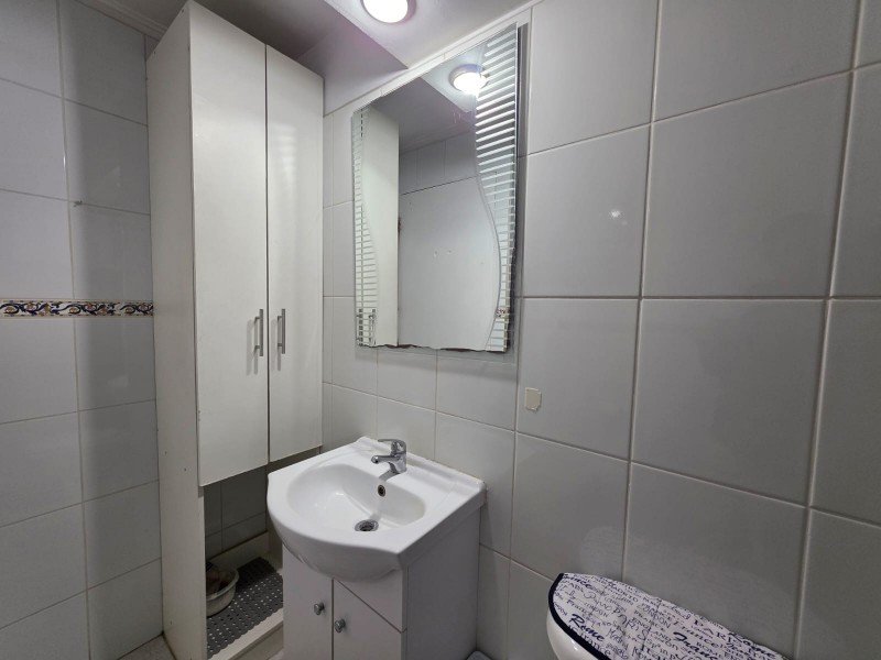 Piso flotante, piso cerámico en baño y balcón.