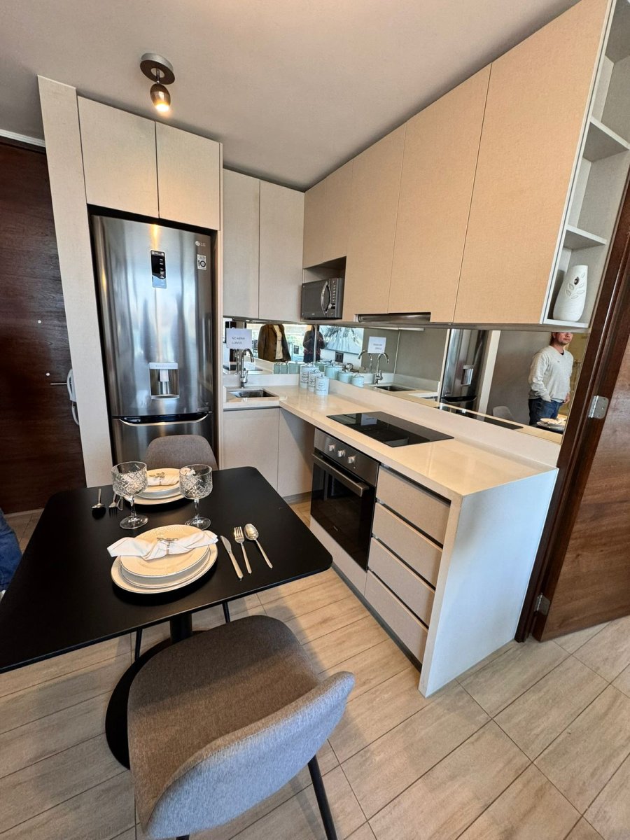 Incluye estacionamiento y bodega, y se entrega listo para habitar, con mobiliario de calidad y excelente estado. También cuenta con conexión para lavadora.