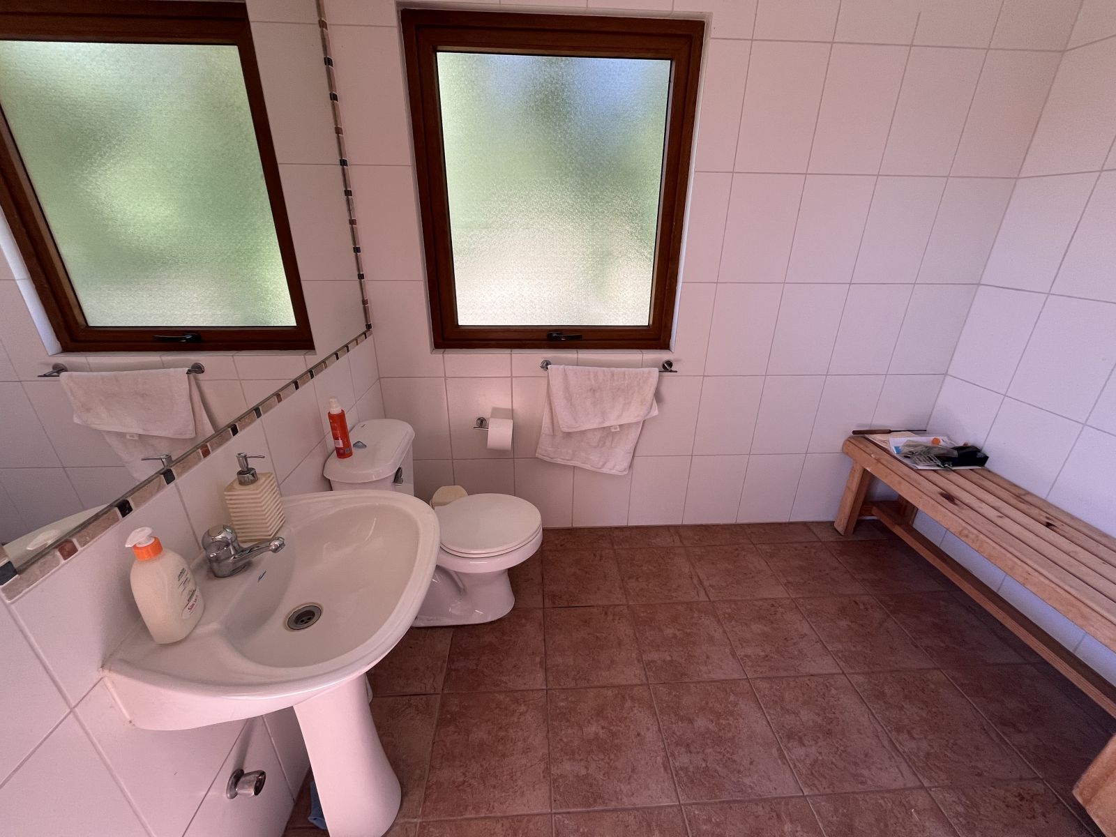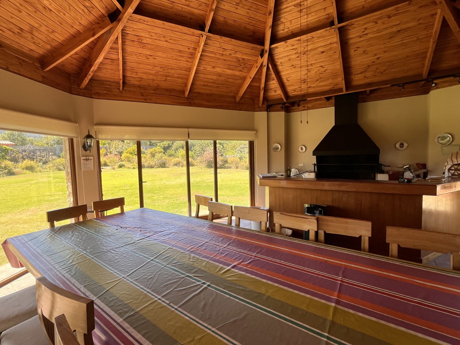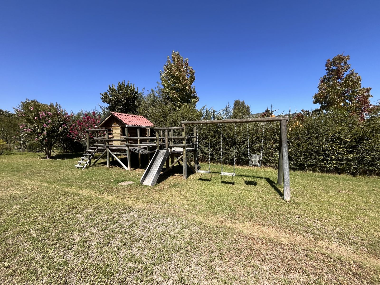 Tiene un gran patio y antejardín con prado y árboles. En el patio se encuentra una piscina, quincho cerrado para usar todo el año, sauna y baño con ducha, juegos infantiles, una pérgola con un horno de barro y un sector independiente con árboles frutales, invernadero y pozo profundo con bombas y estanques de almacenamiento. Además, tiene estacionamiento para 4 vehículos (dos techados), dos bodegas y baño jardinero.