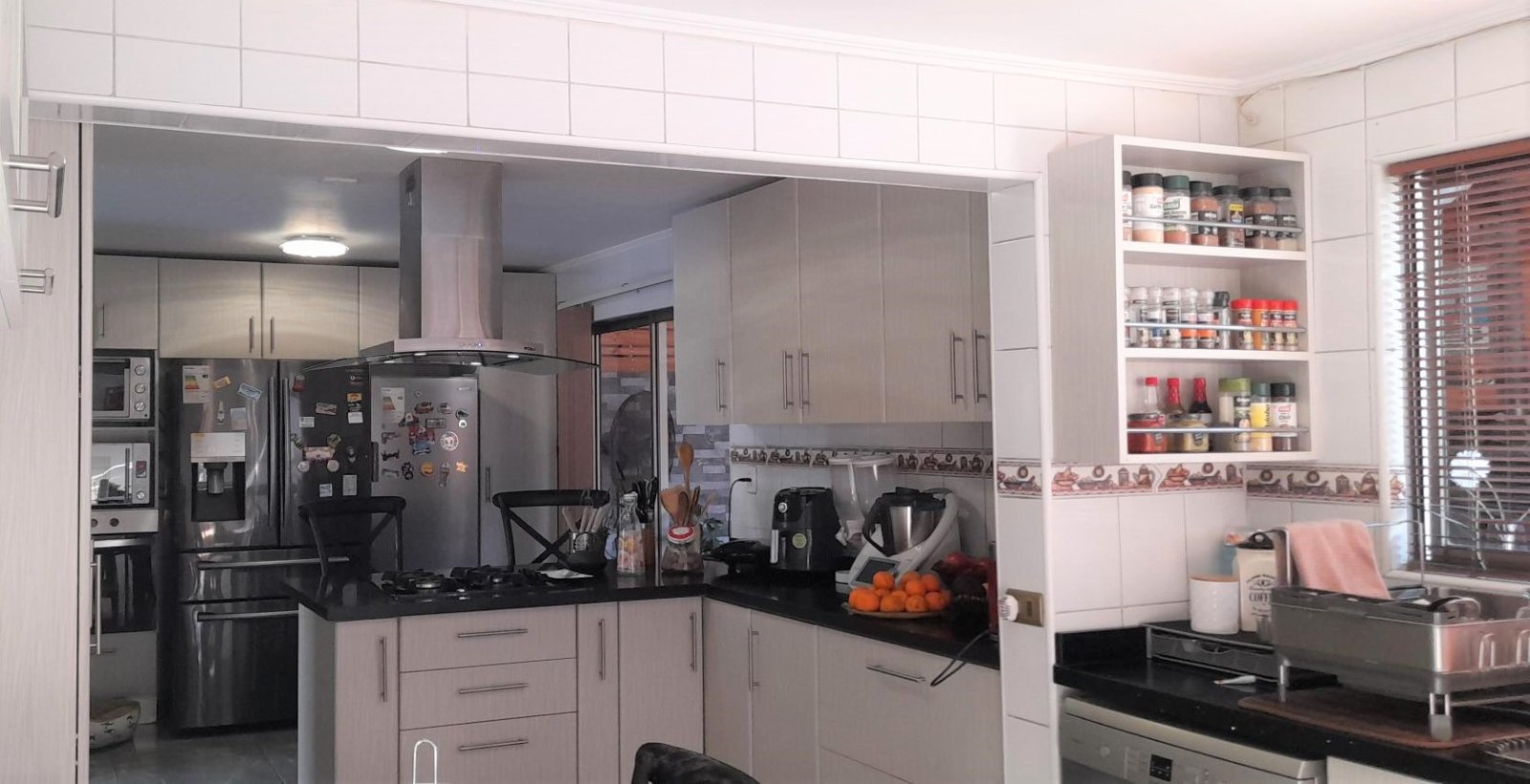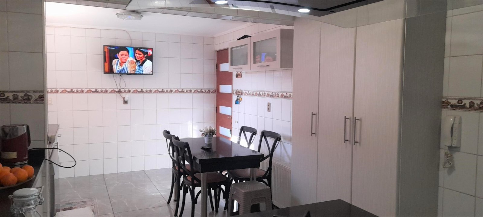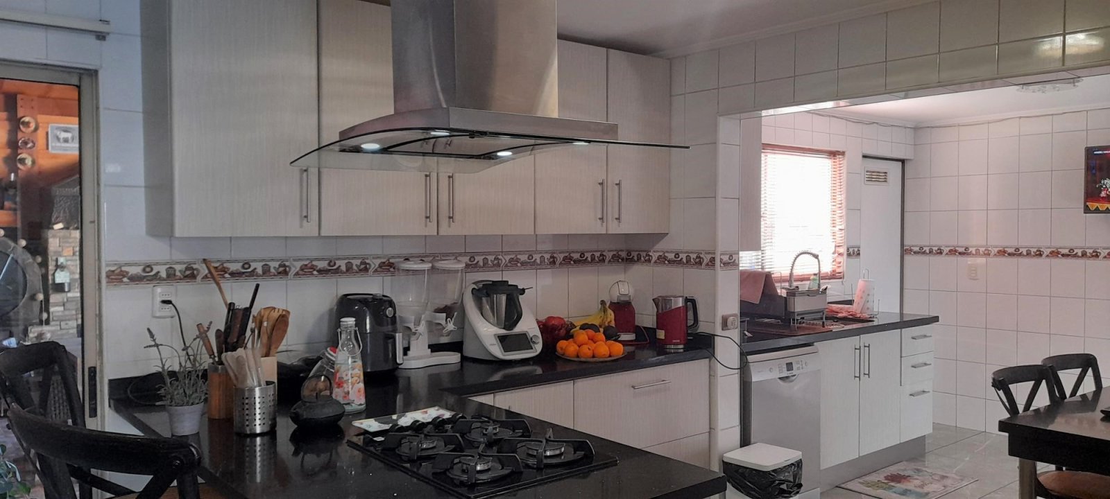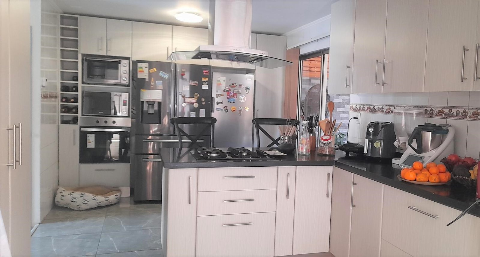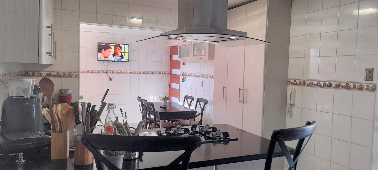 La casa se desarrolla en tres pisos. En el primer nivel se encuentra el living y comedor con piso de cerámica y ventanales que permiten la salida a la terraza y antejardín. La cocina es integrada y ampliada, está amoblada, dispone de isla, desayunador y salida directa a terraza con quincho y logia, además de una parrilla y horno integrados en un diseño rústico. El primer piso cuenta también con baño de visitas. La calefacción es central, con sistema de agua caliente a través de calefón y panel solar.
