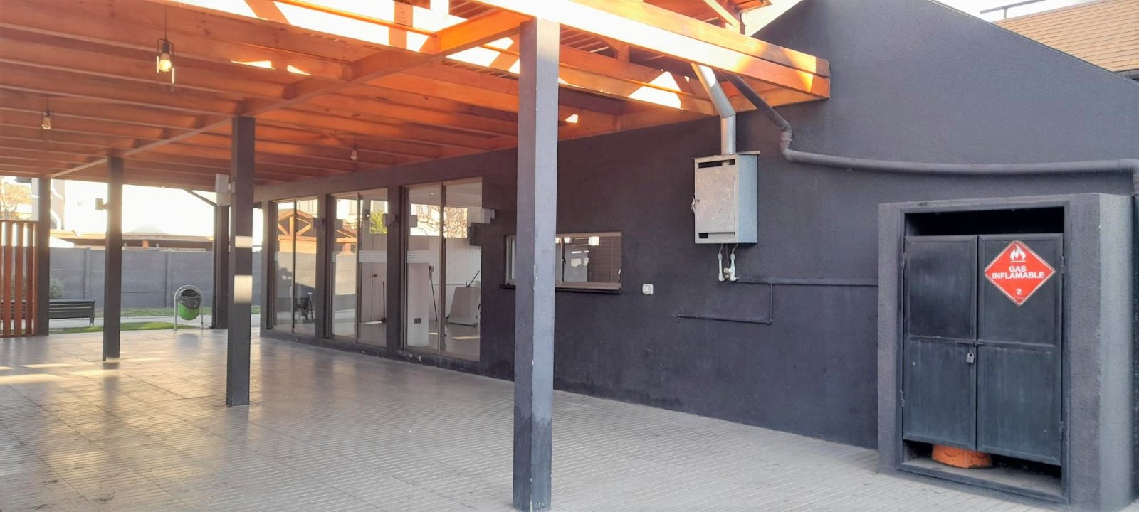 El condominio ofrece portón automático y estacionamiento para dos vehículos. La propiedad cuenta con terraza, jardín, patio y una bodega. Los gastos comunes son de aproximadamente 90.000 CLP mensuales.